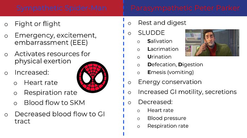 "The comparison of Peter Parker and Spiderman to the Parasympathetic and Sympathetic nervous system simplified the concept so much and was super helpful. I will never confuse the two now that I know that example." - Spring 2022