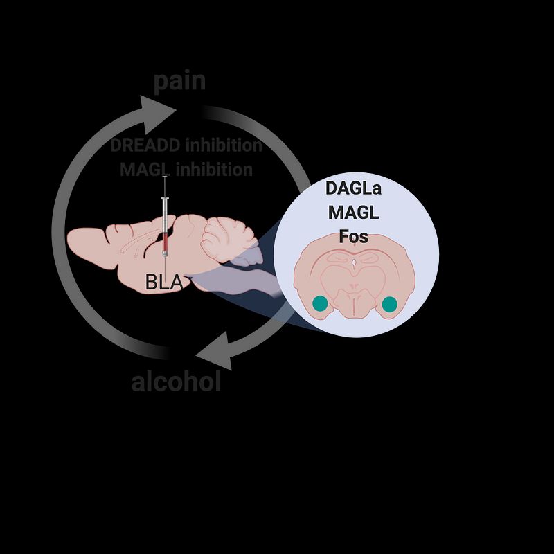 Although the bidirectional relationship of alcohol and pain is clearly defined, the mechanisms behind this relationship remain poorly understood. Additionally, research regarding the relationship between alcohol and pain has largely focused on pain in the context of alcohol use disorder (AUD). Because both chronic pain patients and high-risk alcohol drinkers report drinking alcohol to alleviate their pain, understanding the mechanisms behind the pain relieving effects of alcohol is critical to improving pain management and preventing the progression of recreational alcohol drinking to AUD.